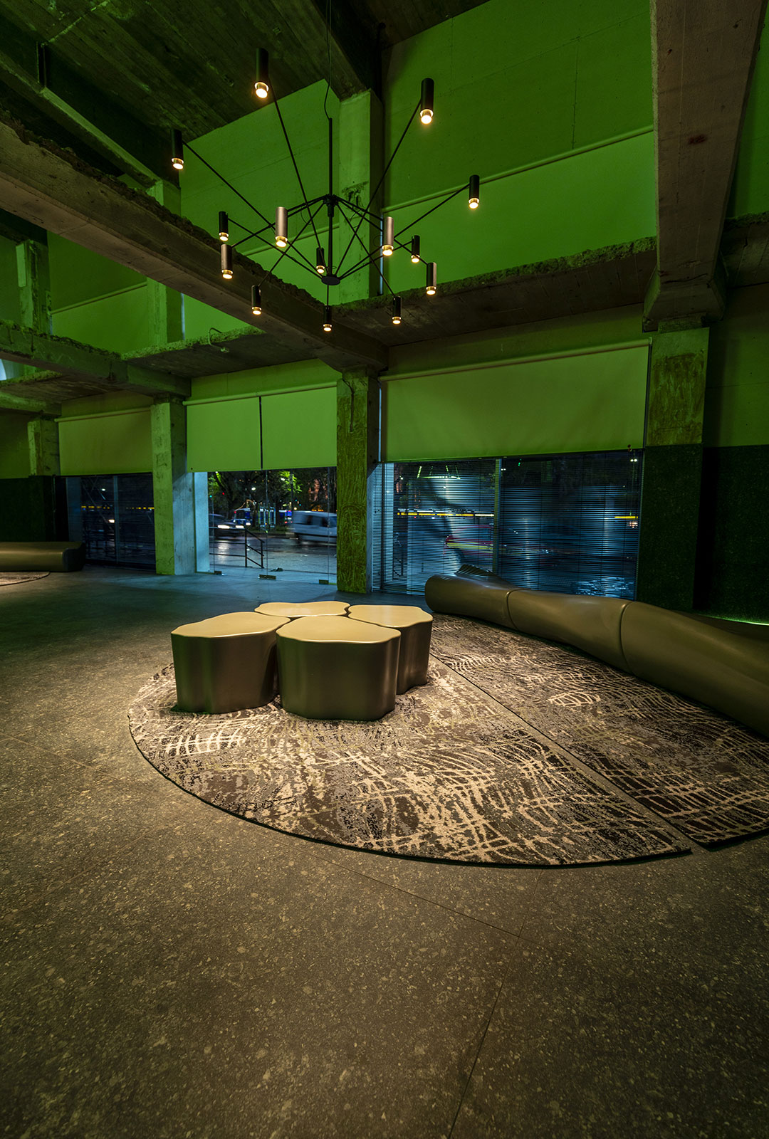 La idea, además de resolver las necesidades propias del hall fue la de generar una experiencia visual y sensorial. Junto con el artista Leo Ocello montamos una escultura lumínica de gran escala como pieza central del espacio. En esta edificación conseguimos el premio a la mejor aplicación de arte y espacio.
